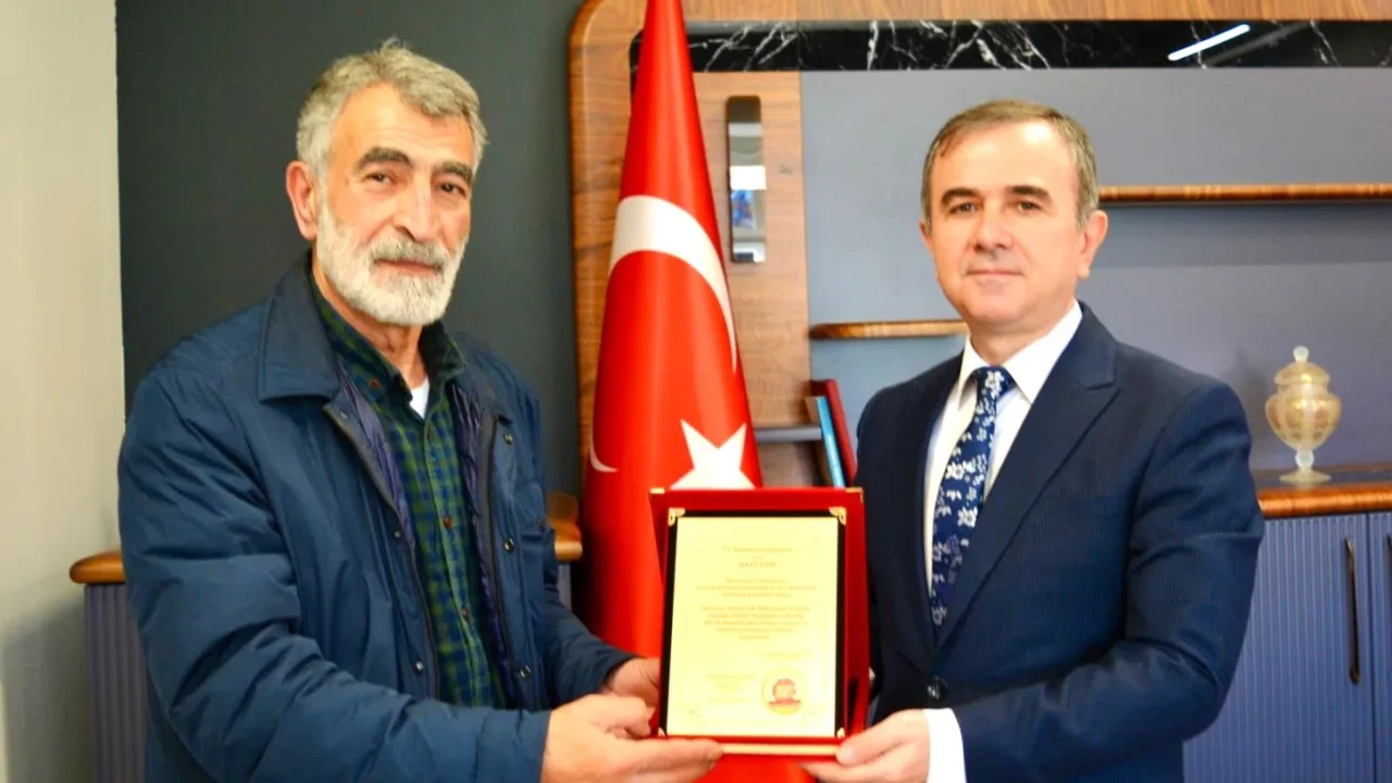 HTBB Başkanı Ahmet Durmuş (solda), Başkonsolos Berati Alver’e “Hoşgeldiniz” plaketi sunarak başarılar diledi.
